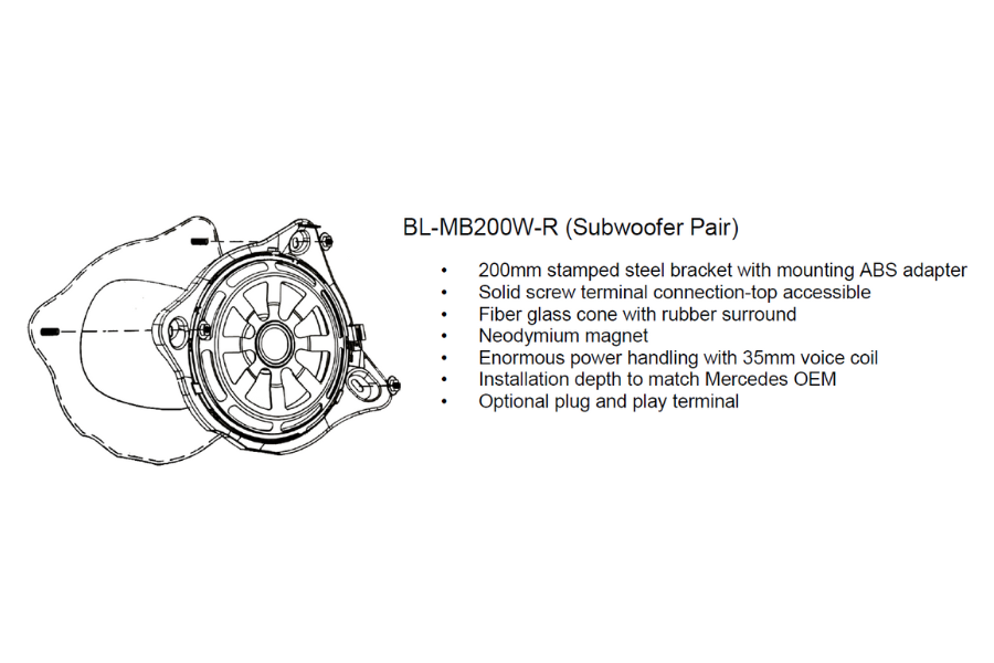 BLAM presents the RELAX MB 200 WR, a set of innovative 8 Inch (200mm) subwoofers that fit perfectly into select Mercedes Benz right hand drive car models. Subwoofer upgrades can be more difficult on Mercedes car models as they have very narrow very specific subwoofers in the footwells. The MB 200 WR subwoofers are custom made to make the installation process faster and make the sound image more precise and clear. They have custom designed metal frames and are surrounded by "adapters" moulded from ABS plastic, which allow the woofers to fit directly into Mercedes original speaker positions.